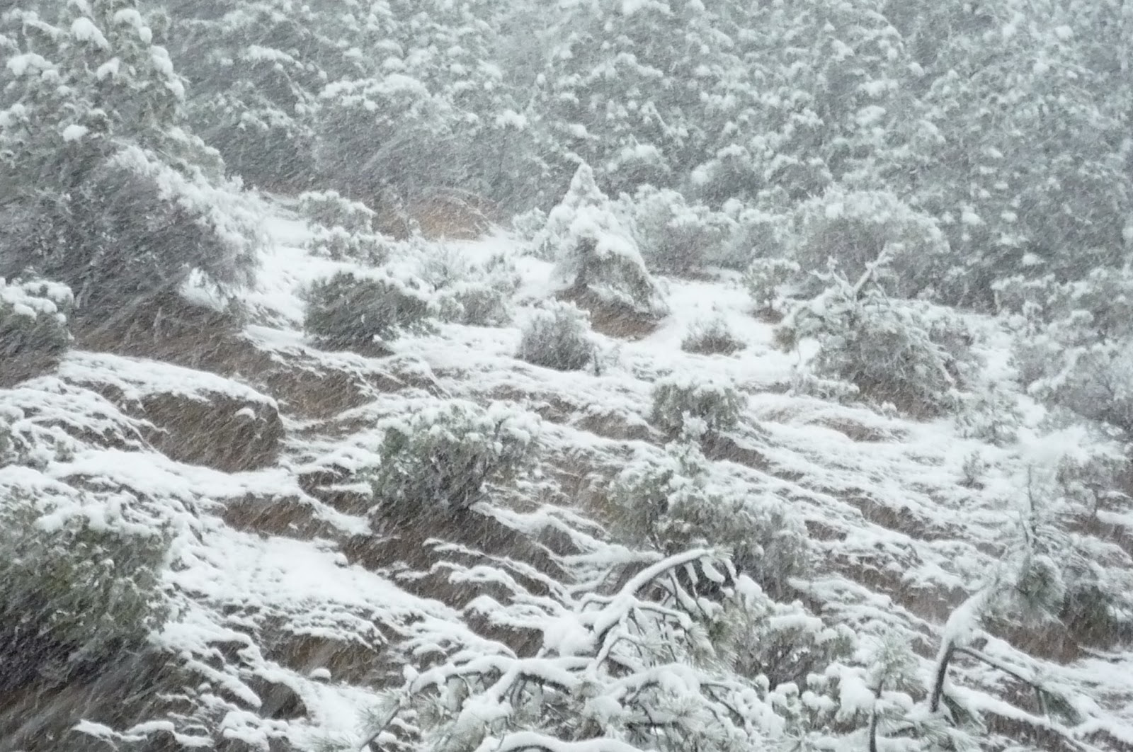 At the Utah line he started to have snow and it was beginning to stick to the roads.